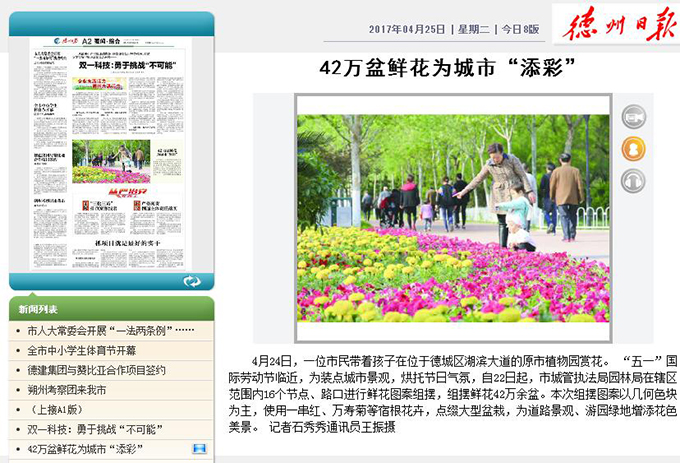 德州日报A2版0425 42万盆鲜花为城市“添彩”